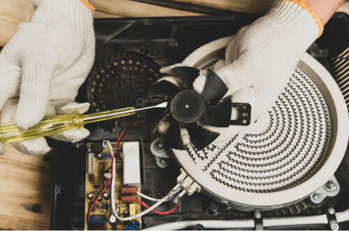 Если техника выключается через несколько минут после начала готовки, то это говорит о том, что сработала автоматическая защита. Причиной этого является нарушение целостности изоляции спирали.
